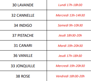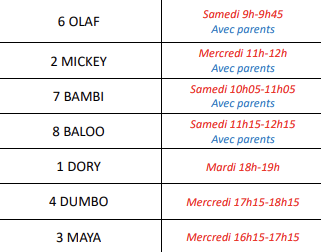 NOM DU GROUPE HORAIRE D’ENTRAINEMENT